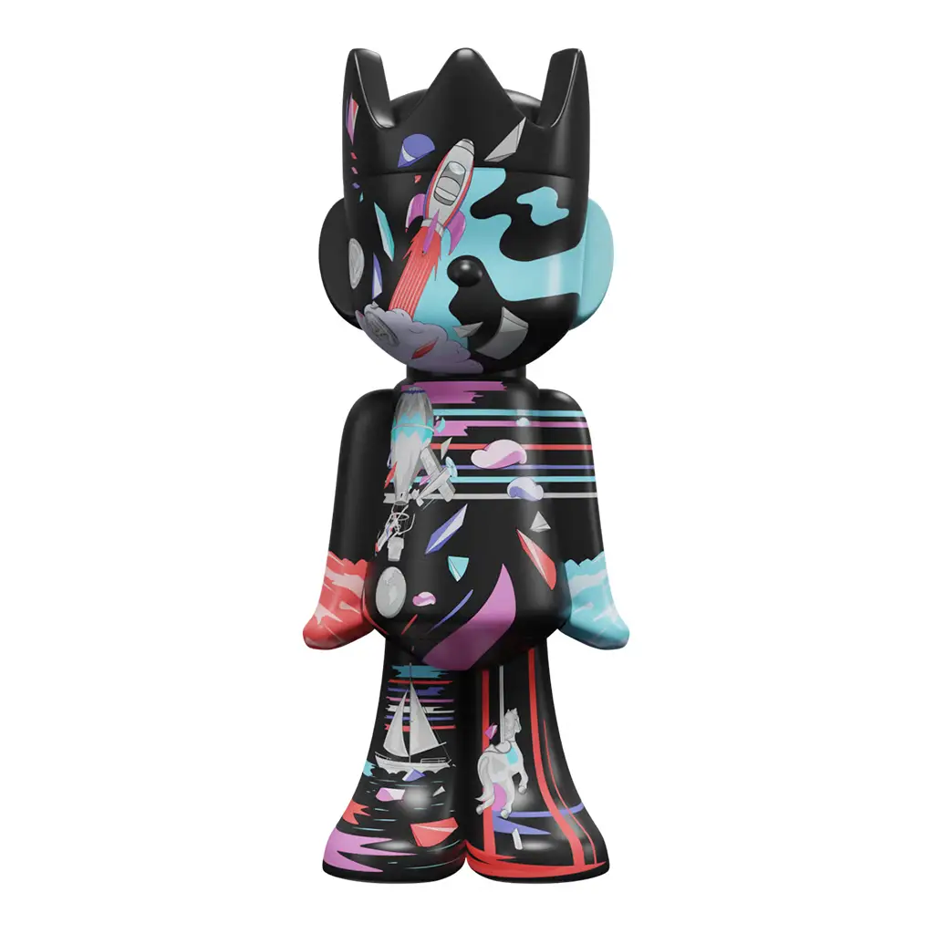 Con una altura de 11 pulgadas y fabricada con acabados de alta calidad, la figura destaca por su presencia escultórica y su diseño característico. Su población total es de 100 piezas, aunque únicamente 60 estuvieron disponibles en subasta, lo que incrementa significativamente su rareza dentro del coleccionismo contemporáneo. Es una pieza altamente codiciada por seguidores del artista y coleccionistas de arte y diseño.