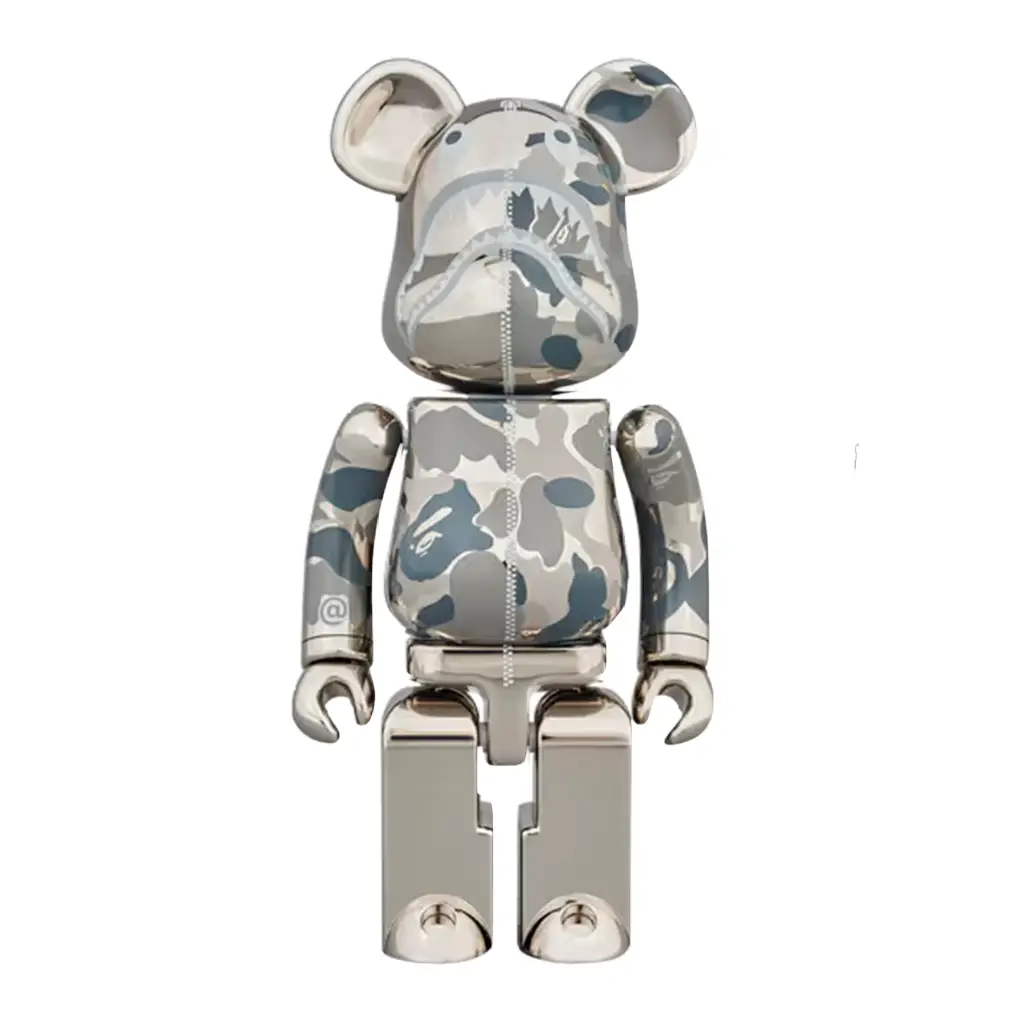 El BE@RBRICK x BAPE Camo Shark 200% es una de las colaboraciones más icónicas entre A Bathing Ape y Medicom Toy, donde el ADN del streetwear japonés se traduce al lenguaje del art toy contemporáneo. Lanzada en 2018, esta pieza incorpora uno de los elementos más reconocibles de BAPE: el Shark motif, convertido en un símbolo global de la cultura urbana.