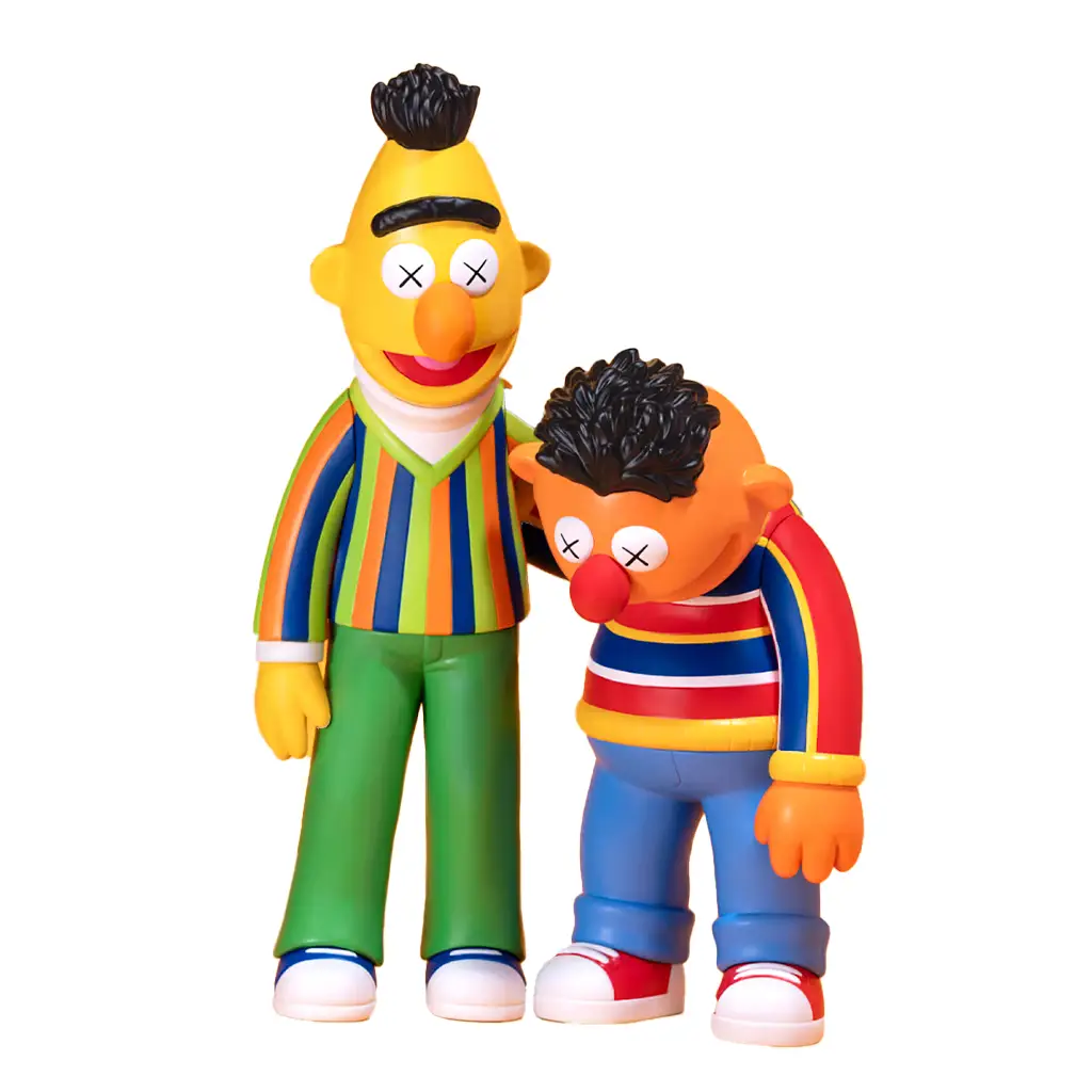 Con su inconfundible estilo, KAWS reinterpreta a los entrañables Bert & Ernie, símbolos de amistad, complicidad y contraste desde los orígenes de Sesame Street. En esta colaboración con AllRightsReserved, ambos personajes son transformados en esculturas de vinil que fusionan el espíritu lúdico de la infancia con la estética elegante y reflexiva del arte contemporáneo.