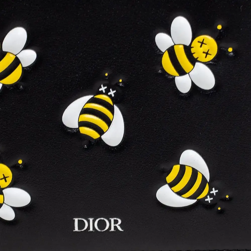 Esta billetera bifold en piel genuina 100% presenta el diseño KAWS Bees, combinando elegancia y vanguardia.