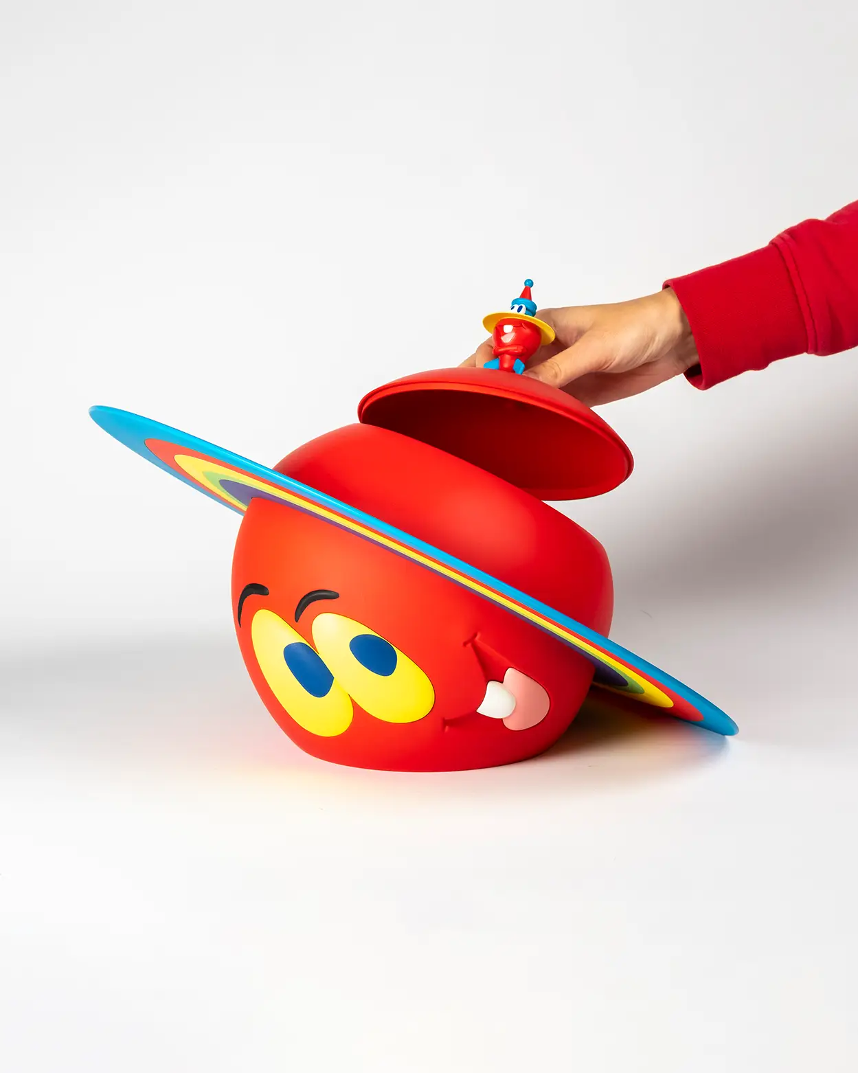 Fabricada en vinil de alta calidad y presentada en una caja personalizada, esta pieza celebra el arte contemporáneo pop con humor, energía y estilo.