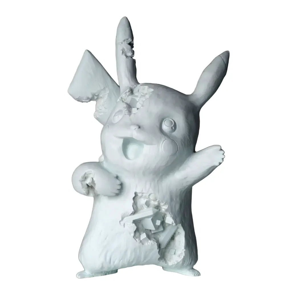 Crystalized Pikachu (Azul) de Daniel Arsham es una de las piezas más emblemáticas de la intersección entre arte contemporáneo, cultura pop y arqueología ficticia, un lenguaje que el artista ha perfeccionado a lo largo de su carrera. Lanzada en 2020, esta escultura reimagina a Pikachu —uno de los íconos más reconocibles de la cultura global— como un objeto erosionado por el tiempo, transformado en una reliquia proveniente de un futuro distante.