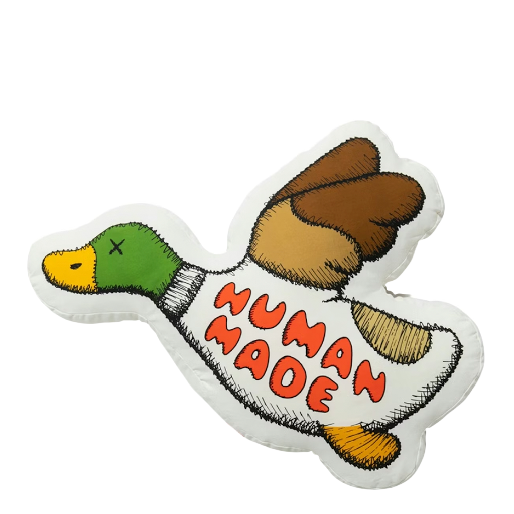 La pieza toma como base uno de los símbolos más icónicos de HUMAN MADE: el pato, transformado sutilmente mediante la intervención visual de KAWS. Sus ojos, reemplazados por el inconfundible motivo “XX”, funcionan como una firma visual inmediata del artista, convirtiendo un objeto cotidiano en un artículo de colección. Esta intervención mínima pero poderosa refleja la filosofía de KAWS: alterar lo familiar para dotarlo de una nueva lectura cultural.