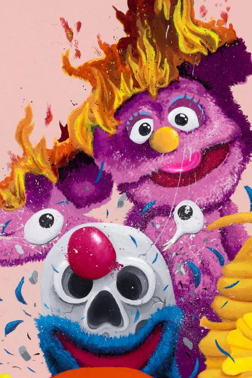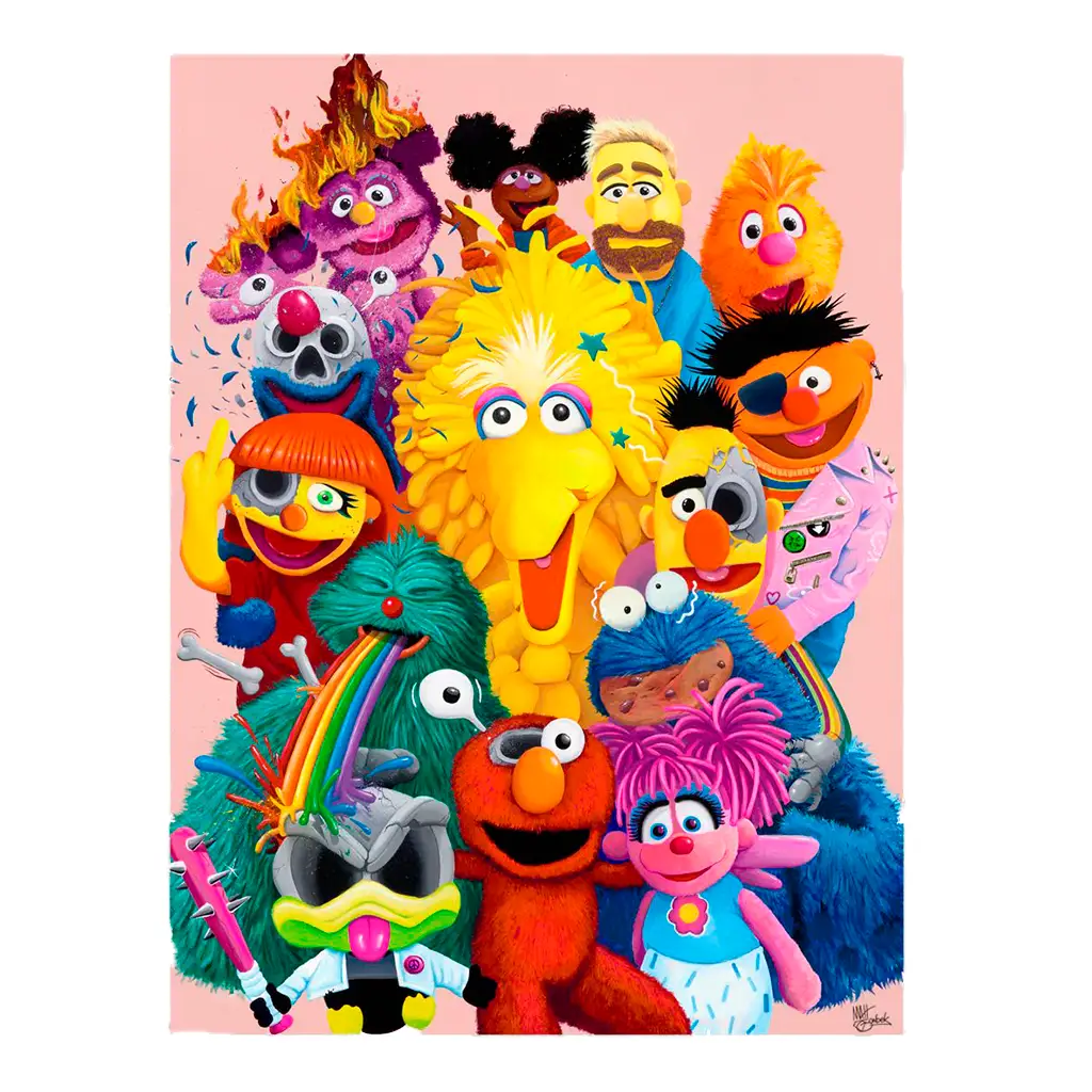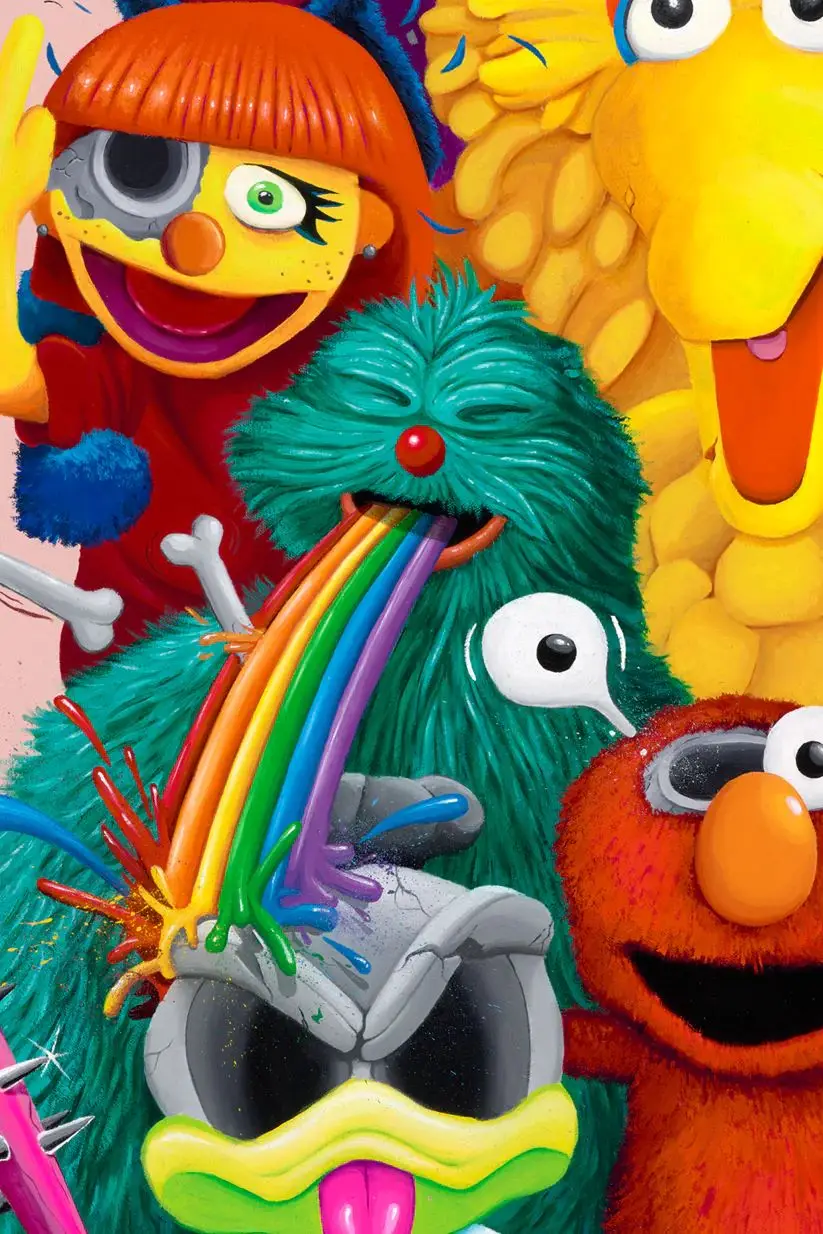 Deconstructed Sesame Street es una obra gráfica que reinterpreta el universo clásico de Sesame Street desde una mirada contemporánea, irreverente y profundamente simbólica. El artista GONDEK deconstruye a los personajes icónicos de la cultura popular infantil, presentándolos con alteraciones físicas, elementos surrealistas y detalles inquietantes que contrastan con su origen inocente.