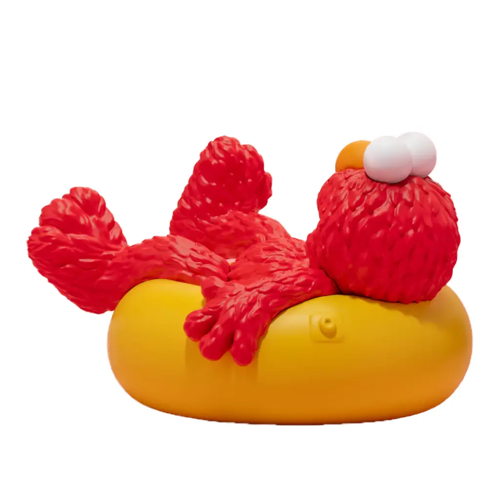 Edición especial de Elmo diseñada por KAWS para el evento internacional “Water Parade” en Hong Kong, una fusión única de arte contemporáneo y cultura pop.