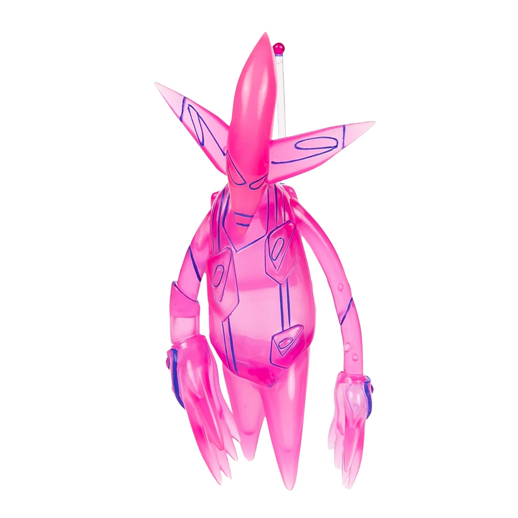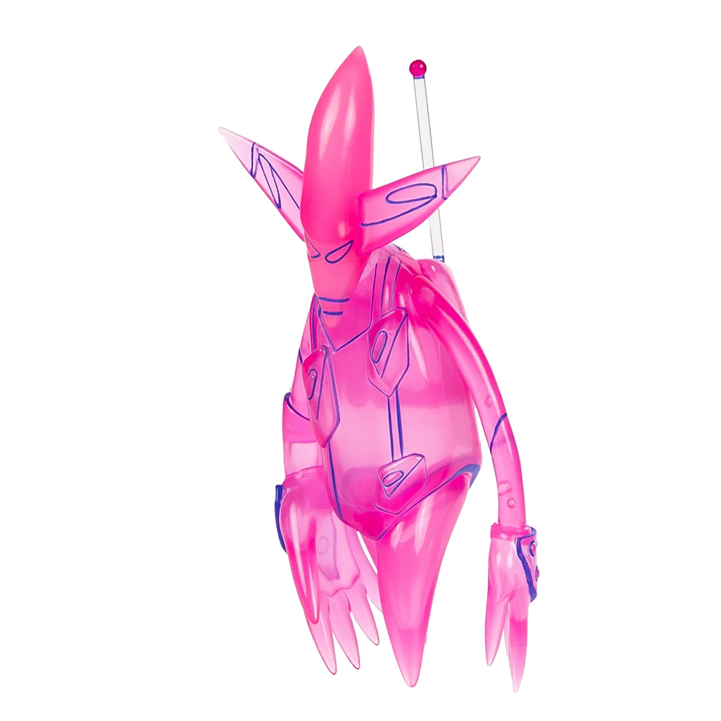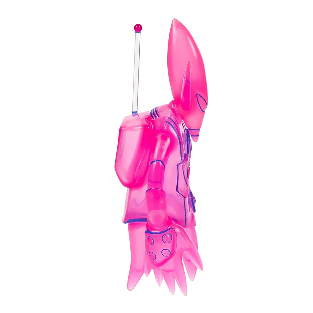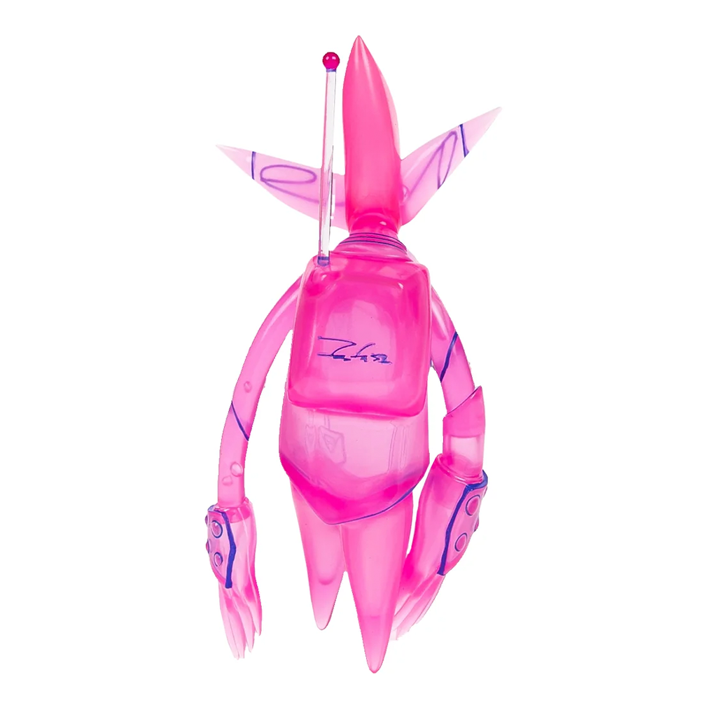 Esta edición Mini mide 15 cm, la mitad del tamaño original, y destaca por su espectacular acabado fluorescente en rosa con contornos en azul oscuro, que hacen que cada detalle resalte.