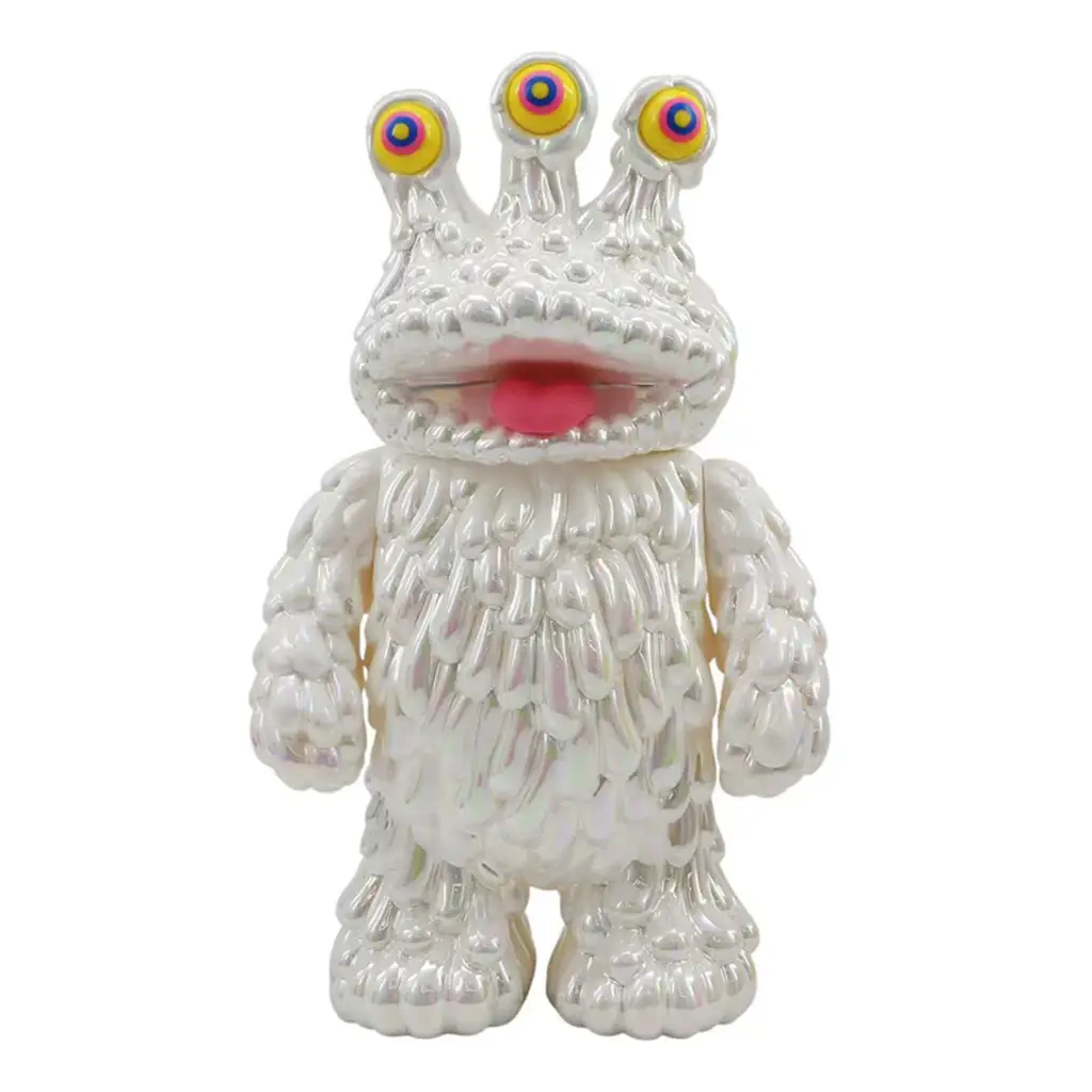 Fabricado en soft vinyl (sofubi), este collectible presenta un acabado metallic white con efecto brillante que eleva su estética y lo convierte en una pieza visualmente impactante tanto en exhibición como dentro de cualquier colección de designer toys.
