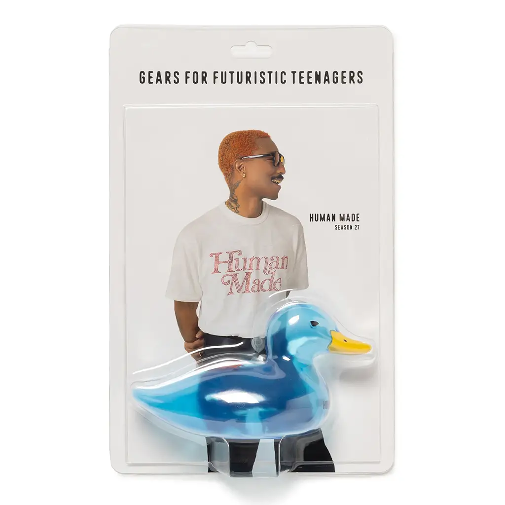 Lookbook oficial HUMAN MADE Season 27, presentado en un exclusivo blister pack que incluye un rubber duck azul coleccionable. Una edición limitada que fusiona moda, diseño y cultura pop, protagonizada por Pharrell Williams y con gráficos de Verdy.