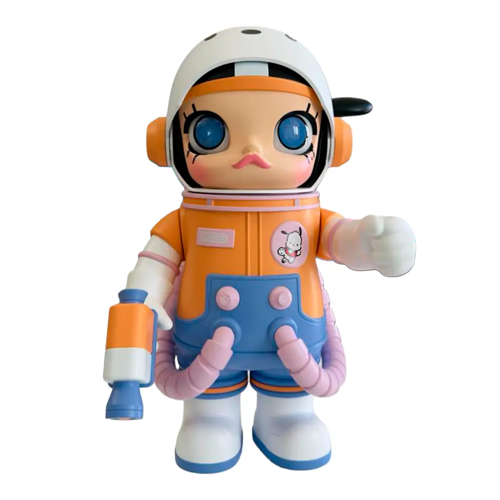 La figura destaca por su formato 400%, con una altura aproximada de entre 30 y 38.5 cm, y por su cuidada ejecución en materiales de alta calidad, característica distintiva de POP MART. El diseño combina la estética futurista de Space Molly con la dulzura y el legado cultural de Hello Kitty, creando una pieza llamativa tanto para coleccionistas de art toys como para fanáticos de Sanrio.
