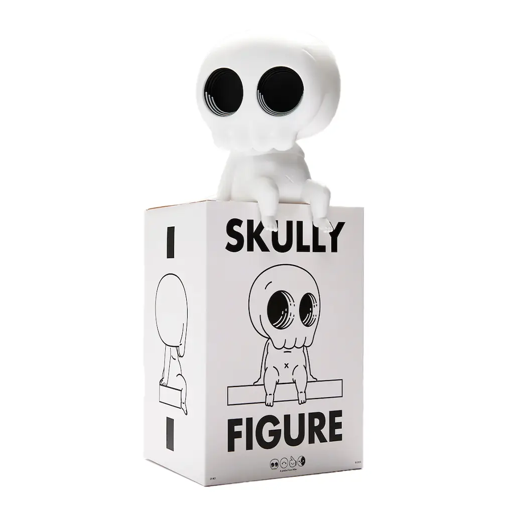 Esta primera versión producida por Harman Projects se lanzó en color blanco como debut oficial de la figura, marcando el inicio de lo que promete ser una serie muy deseada por coleccionistas. Con una altura de 20 cm, el Skully mantiene las proporciones y los ojos característicos de Mitchell, trasladados fielmente al vinilo.