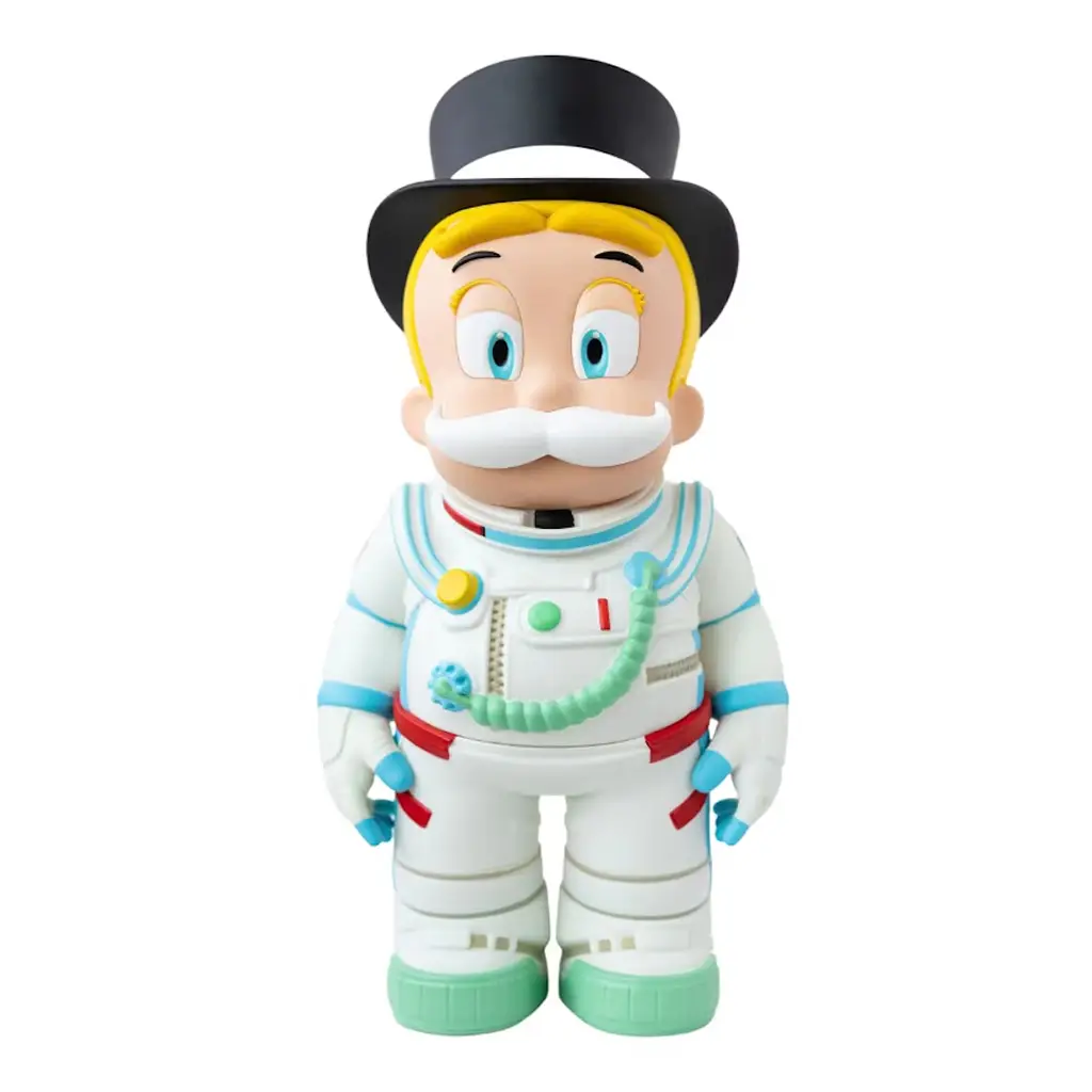 Space Man Richie (Rags To Richie Astronaut), creada en 2023 por Alec Monopoly, es una escultura de vinil pintado que marca el debut de un art collectible exclusivo para la comunidad NFT Rags to Richie. Esta pieza se sitúa en la intersección entre el arte físico y el digital, redefiniendo el concepto de arte phygital al conectar el universo Web3 con el mercado del arte contemporáneo de alto perfil.