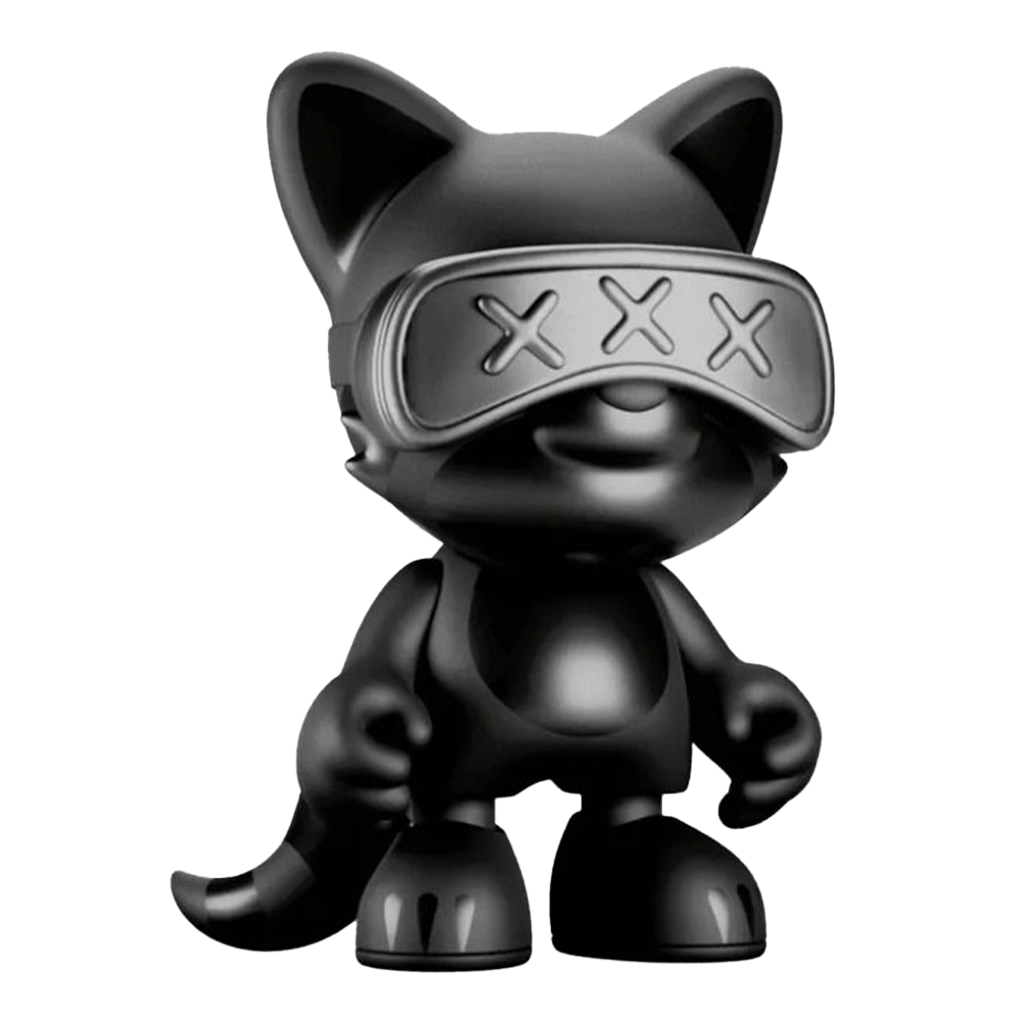 La figura Black SuperJanky (8″) fusiona el icónico Red Panda Cat de Kiss Land con el cuerpo clásico de SuperJanky, añadiendo detalles únicos como cabeza personalizada, cola esculpida y gafas VR removibles.