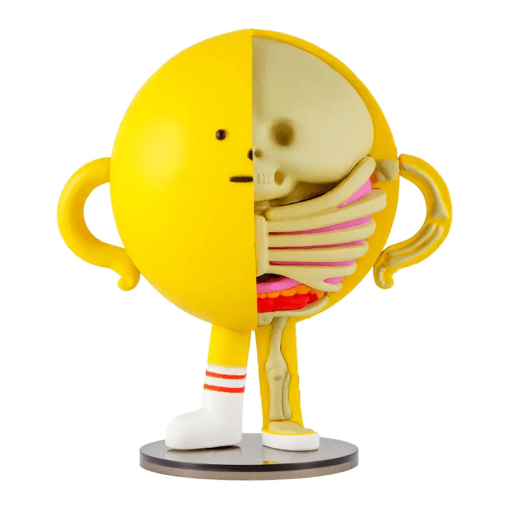 XXRAY SML Yellowmon es el resultado de la colaboración entre Jason Freeny, pionero del concepto half-dissected art, y el estudio coreano Sticky Monster Lab (SML), reconocido internacionalmente por su estética adorable, narrativa visual y cruces entre ilustración, animación y diseño de personajes. Esta pieza reimagina a Yellowmon bajo el característico enfoque anatómico de Freeny, revelando huesos y órganos internos sin perder el encanto ni la simpatía del personaje original.